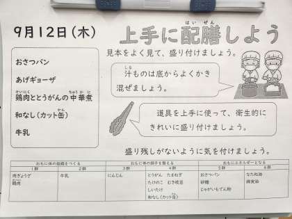 見本をよく見て、盛り付けましょう。