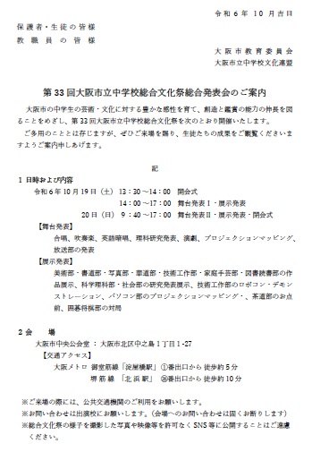 第33回大阪市立中学校総合文化祭総合発表会のご案内