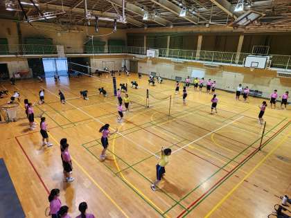 体育館の部活動の様子です。限られた場所と時間のなか、主体性をもって取り組んでいます。