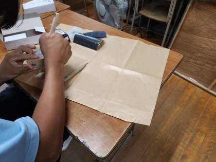 「篆刻」に取り組んでいます。黙々と彫ることに集中しています。