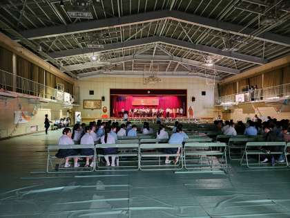 3年生の舞台発表は「学年劇」です。学年が一丸になって取り組んでいます。本番に向けて、仕上げも最終段階です。