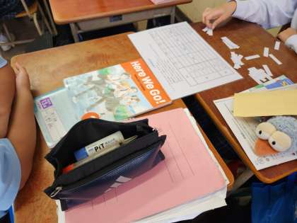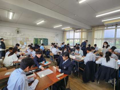 グループに分かれて、ゲーム形式で人称代名詞の理解を深めました。そして、それらが文の中でどのように使われるか、演習問題を通して確認しました。