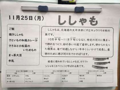 給食に使われているししゃもは、カラフトシシャモ(カペリン)と呼ばれる魚です。