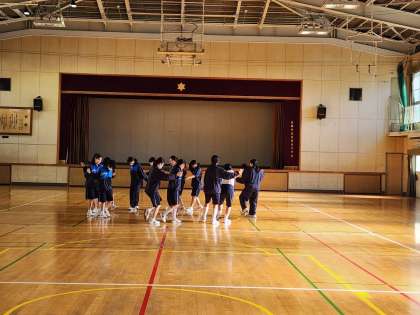 フォークダンスに取り組んでいます。踊り方の特徴を捉え、音楽に合わせて踊っています。