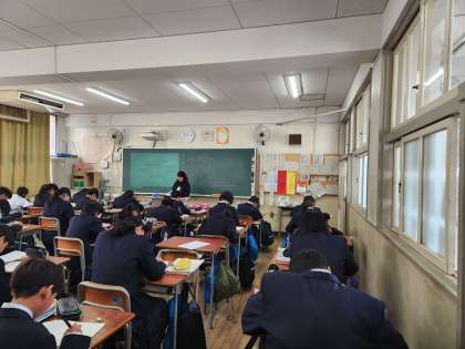 ヒアリングに取り組んでいます。静かに耳を澄まして、英語の文章を聞き取っています。