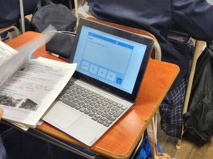 学習用端末に入っている学習用ソフトを使って、今までの学習内容を振り返っています。