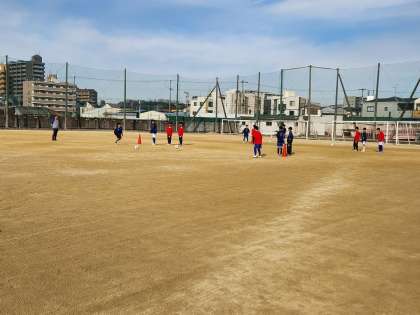 パス練習に取り組んでいます。ボールを止める、ボールを受ける動きなど、細かいところもおろそかにせず、ていねいに取り組んでいます。