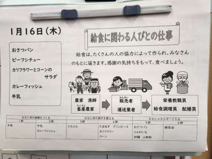 給食は、たくさんの人の協力によってつくられ、みなさんのもとに届きます。感謝の気持ちをもって食べましょう。