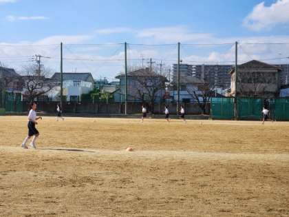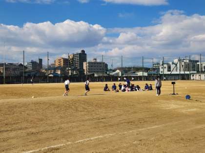 女子が長距離走に取り組んでいます。ペースを守って走ることを意識します。