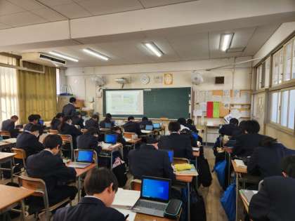 日本の様々な自然災害、日本で発生する自然災害は地形や気候とどのような関係があるか?防災について考えることをテーマに授業が行われました。