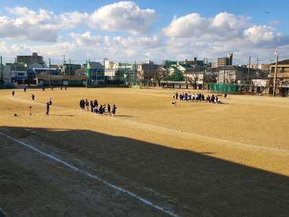 長距離走に取り組んでいます。冷たい風のなか、息を白くして走っています。