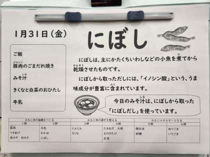 今日のみそ汁は、にぼしからとった「にぼしだし」を使っています。