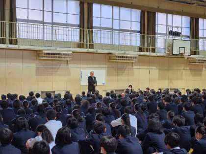 全校集会では、校長先生から「服などを整えるときの所作に感動したこと」「私立高校の受験が終わり、これからの学校生活、周りの人のことを考えて、行動すること」について、お話がありました。