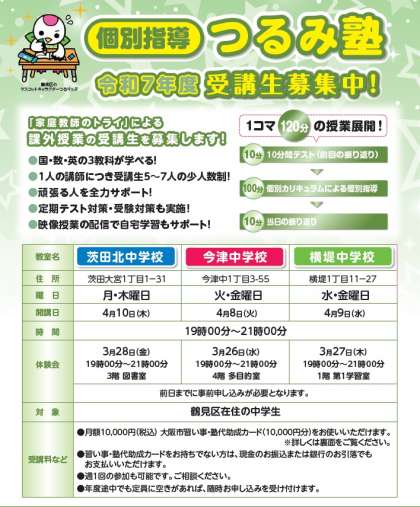 個別指導 つるみ塾 令和7年度受講生募集中!