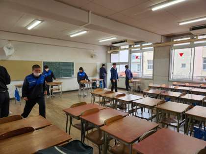 お世話になった教室に、感謝の気持ちで掃除をします。次に使う学年が使いやすいよう、きれいにします。