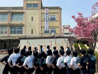 近畿大会出場にあたり、たくさんの中学校、高校、先生や先輩方に協力していただき、ここまでこれました。本当にありがとうございます。学校ではとっても素敵な垂れ幕も用意していただきました。気持ちをひとつに明日頑張ってきます。
