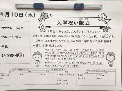 中学校家庭配付用献立表