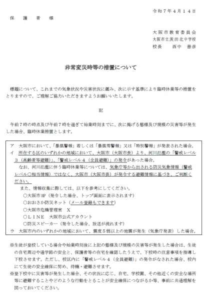 非常変災時等の措置について