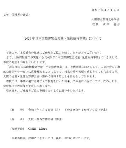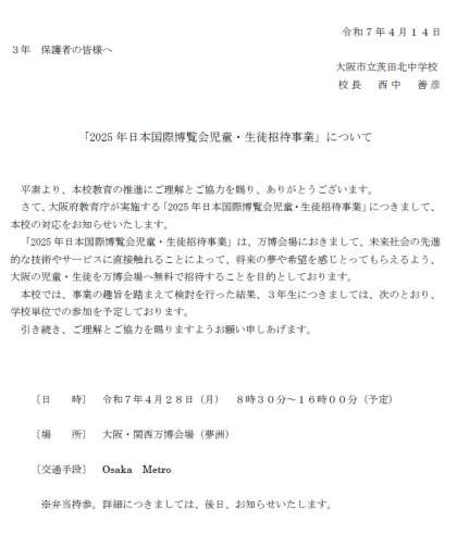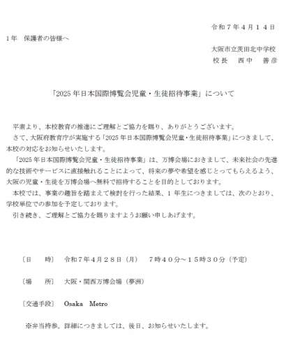 「2025年日本国際博覧会児童・生徒招待事業」について