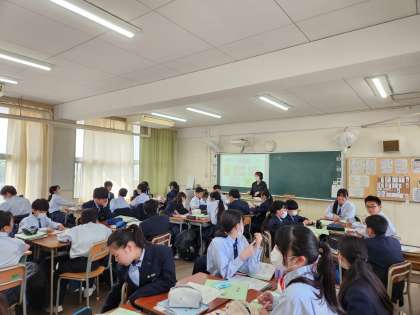 グループに分かれて、生物の分類について考えています。学習に対する主体的な対話を通して、理解を深めます。