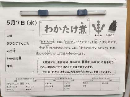 今日の「わかたけ煮」は、大阪産の「たけのこ」を使っています。