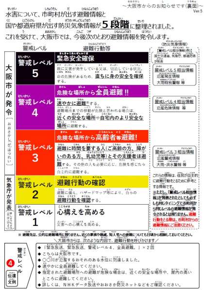 大阪市からのお知らせ 警戒レベルの導入に関するチラシ