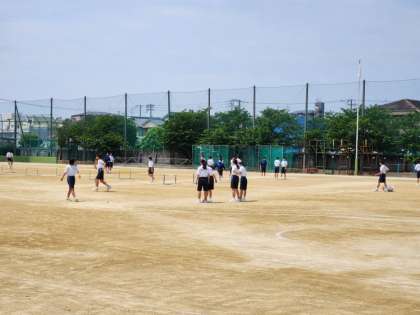 体育大会の種目の練習に取り組んでいます。出場種目に分かれて、グループで取り組んでいます。