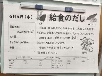 給食では、 だし昆布やけずり節などからだしをとっています。