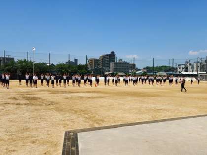 しっかりとした準備運動の後、体育大会の種目練習に取り組んでいます。