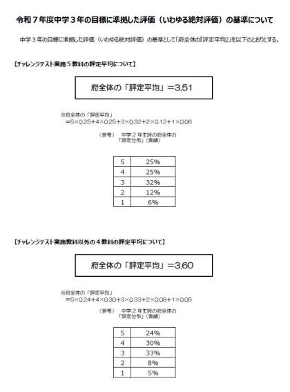 令和7年度中学3年の目標に準拠した評価(いわゆる絶対評価)の基準について