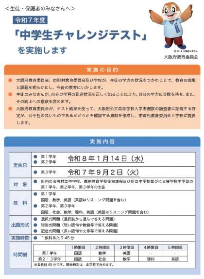 令和7年度 中学生チャレンジテスト実施にあたってのリーフレット