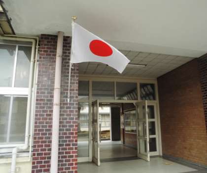 玄関に国旗を掲げています。
