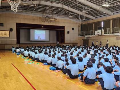 講師の方を招いて、スマートフォンや携帯電話の安全な利用方法を学びました。