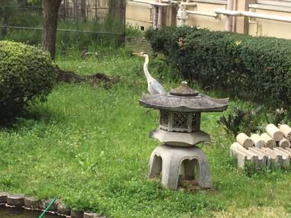 本校にアオサギが飛来しました。