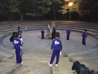 キャンプファイヤー係生徒が、リハーサルをしています。