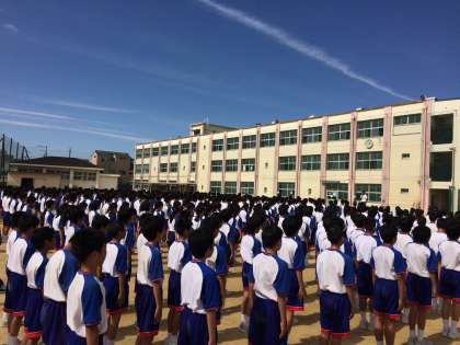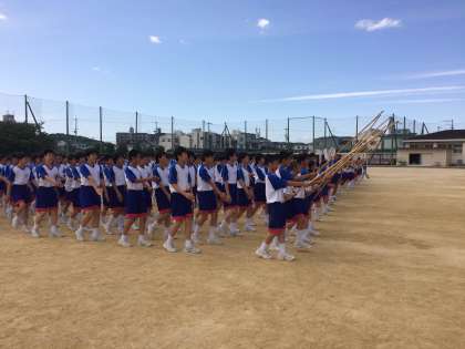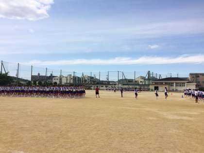 体育大会全体練習の様子です。暑い中しっかりと頑張っていました。