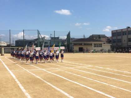 入場行進です。暑くなりますが、悔いのないよう精一杯がんばってもらいたいですね。