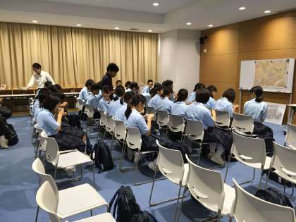 午前中の舞鶴での平和学習を終え、1〜3組は鳥取県湯梨浜町のホテルへ、4〜6組は鳥取県倉吉市の民泊へ向かいます。