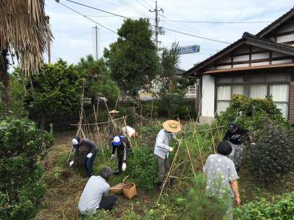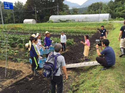 鳥取県倉吉市で農村体験をしています。朝は野菜の収穫作業です。