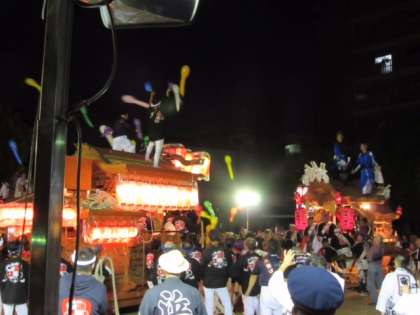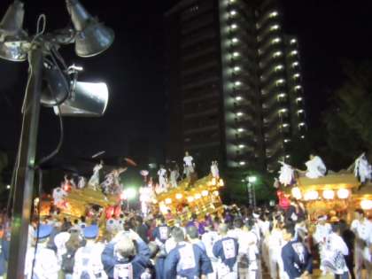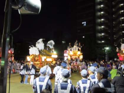 区内の七つの地域の地車が10月9日、浜北公園に集まってパフォーマンスを繰り広げました。