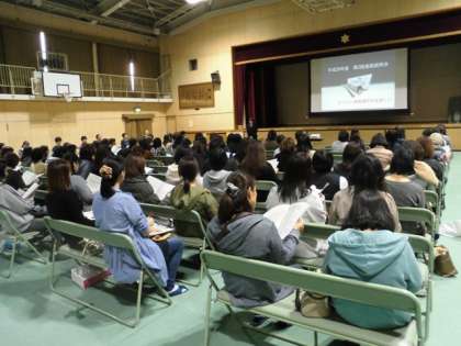 学校長のあいさつ 進路指導主事の説明の様子です。