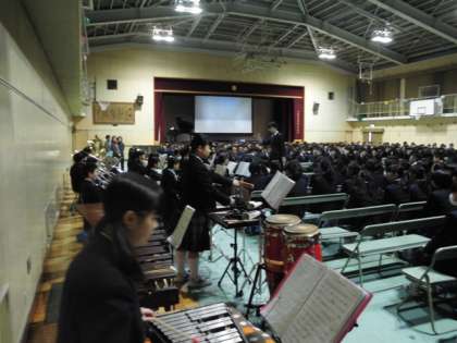 吹奏楽部の演奏で3年生入場