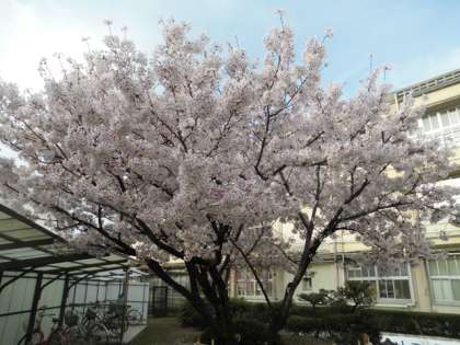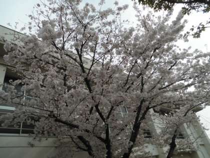 校内の桜が満開ですが、少し花びらが散ってきています。