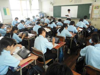 1年生 社会 タブレットを活用した調べ学習の様子です。
