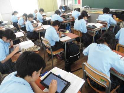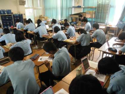 1年生 社会 地理 タブレットを活用した調べ学習の様子です。