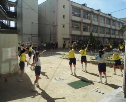中庭 部活動風景です。
