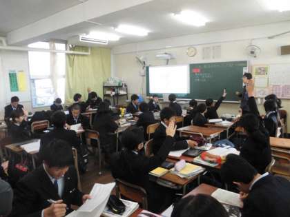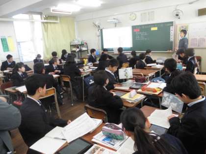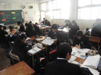 1年生 社会 研究授業 タブレットを活用した授業風景です。