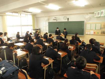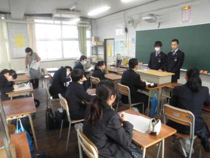 2年生学年委員会 1月を振り返り、これからの目標を相談しています。