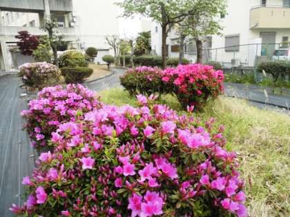 1年生校舎裏 ツツジの花が咲いてきました。