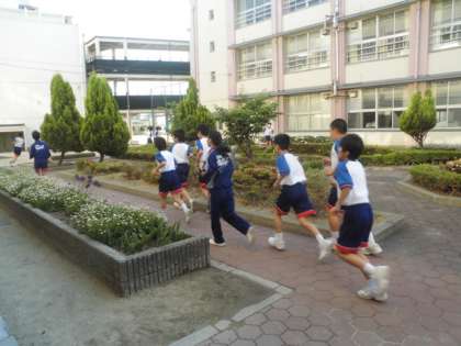 中庭の部活動風景です。